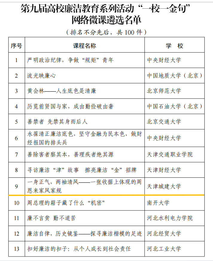《寻根·铸魂·立志:让青春永葆“廉”色》获评天津市大中小学廉洁文化微课优秀课程