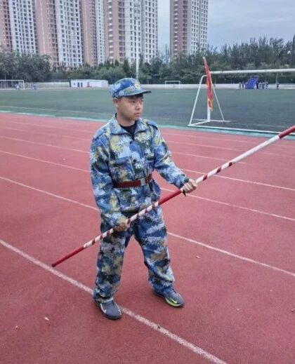 同样持棍的他们,站在跑道上神情沉稳。手中的训练棍不仅是训练器材,更是他们对“责任”的践行——无论何种任务,都以认真态度对待,用坚守为军训有序开展添砖加瓦。